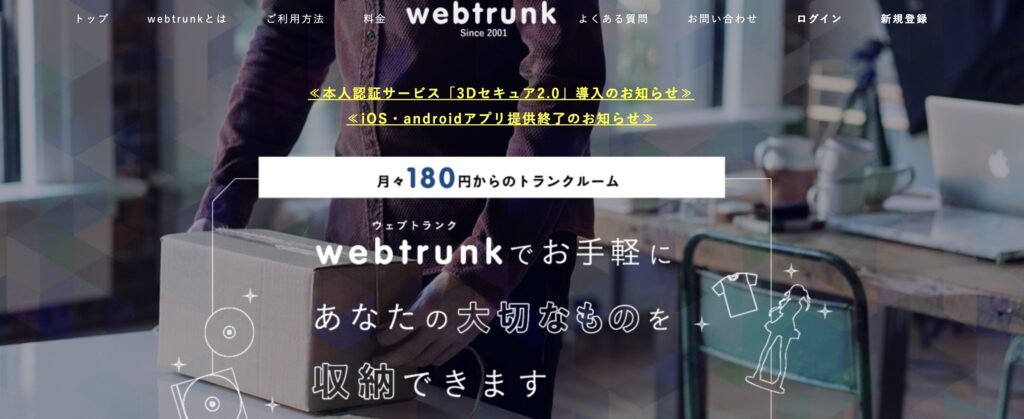 Webtrunk(ウェブトランク)は月額180円からの格安価格で利用できる宅配型トランクルームです。
